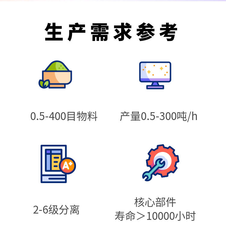 該產(chǎn)品篩分精度高、處理量大、結(jié)構(gòu)簡(jiǎn)單、耗能少、噪音低、篩網(wǎng)使用壽命長(zhǎng)、密封性好、無(wú)粉塵溢散、維修方便、可用于流水線生產(chǎn)中的自動(dòng)化作業(yè)。